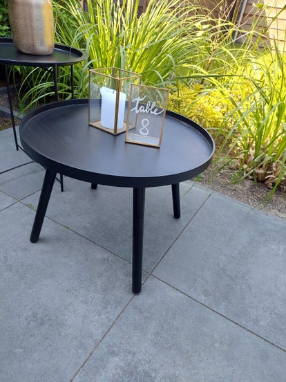 Tafelblad ligt los op de poten en kan ook als dienblad worden gebruikt. Poten kunnen ingeklapt worden zodat deze makkelijk te vervoeren is in de auto.