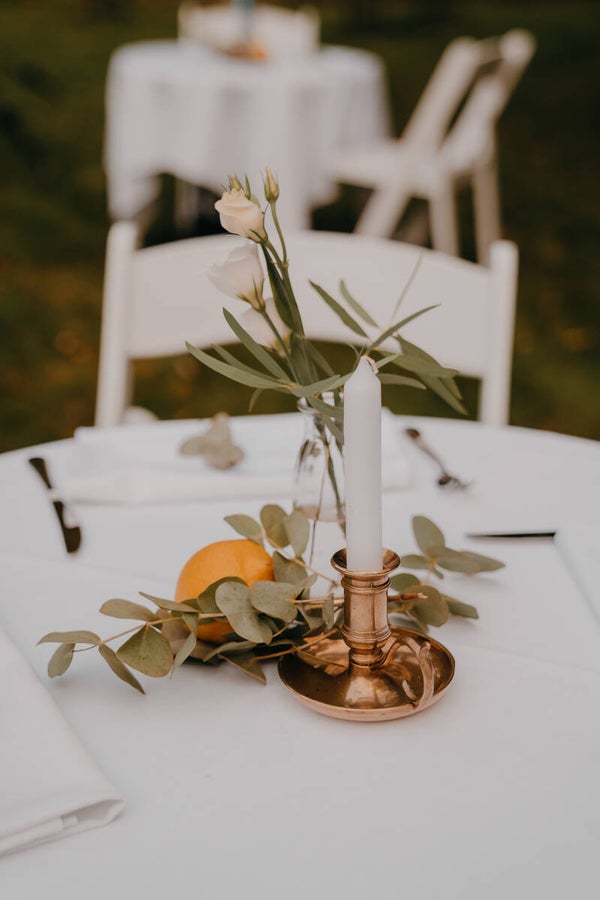 Tip: Laat de bloemist de vaasjes voor je vullen zodat dezelfde bloemen als het boeket gedurende de dag overal terug komen.